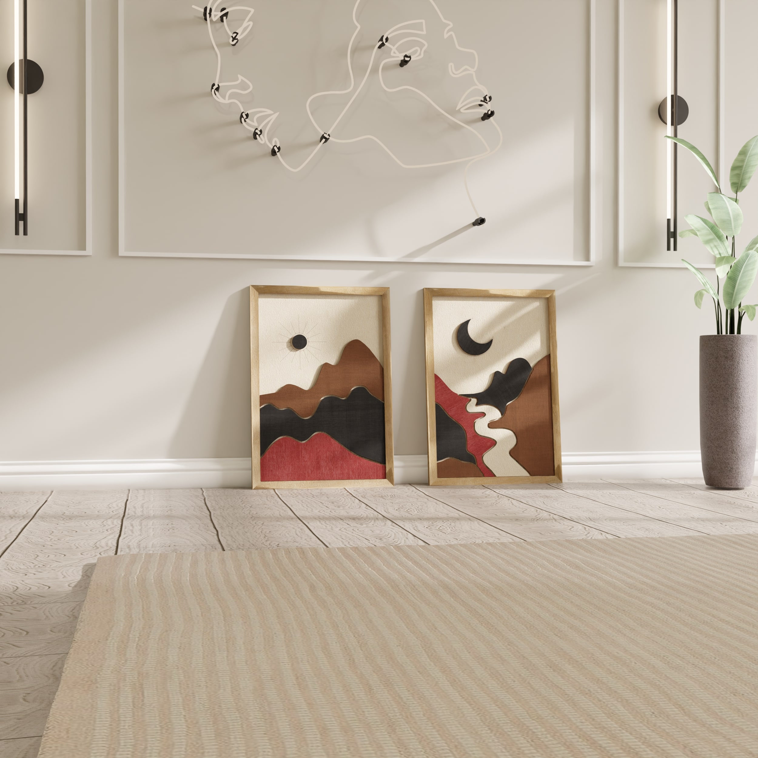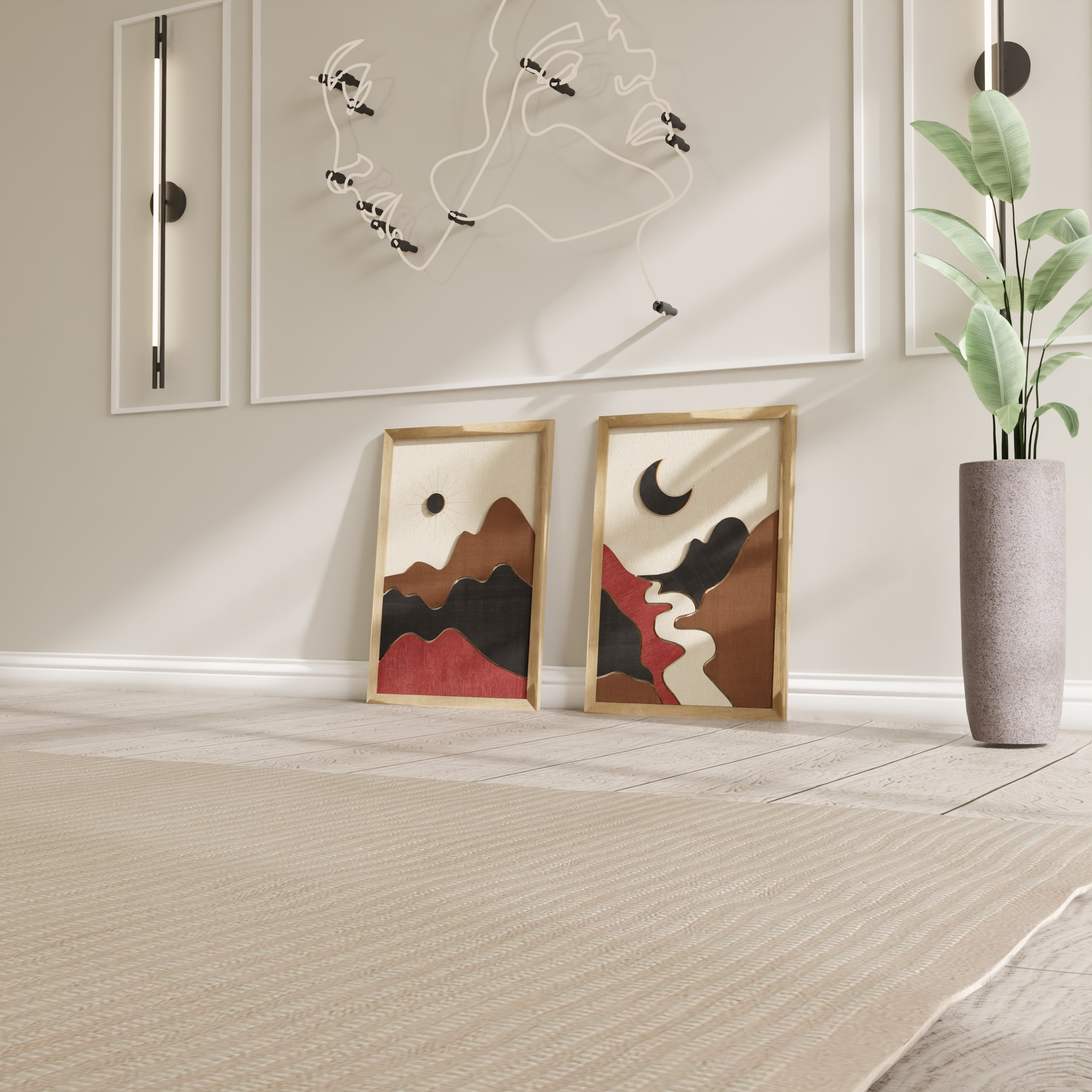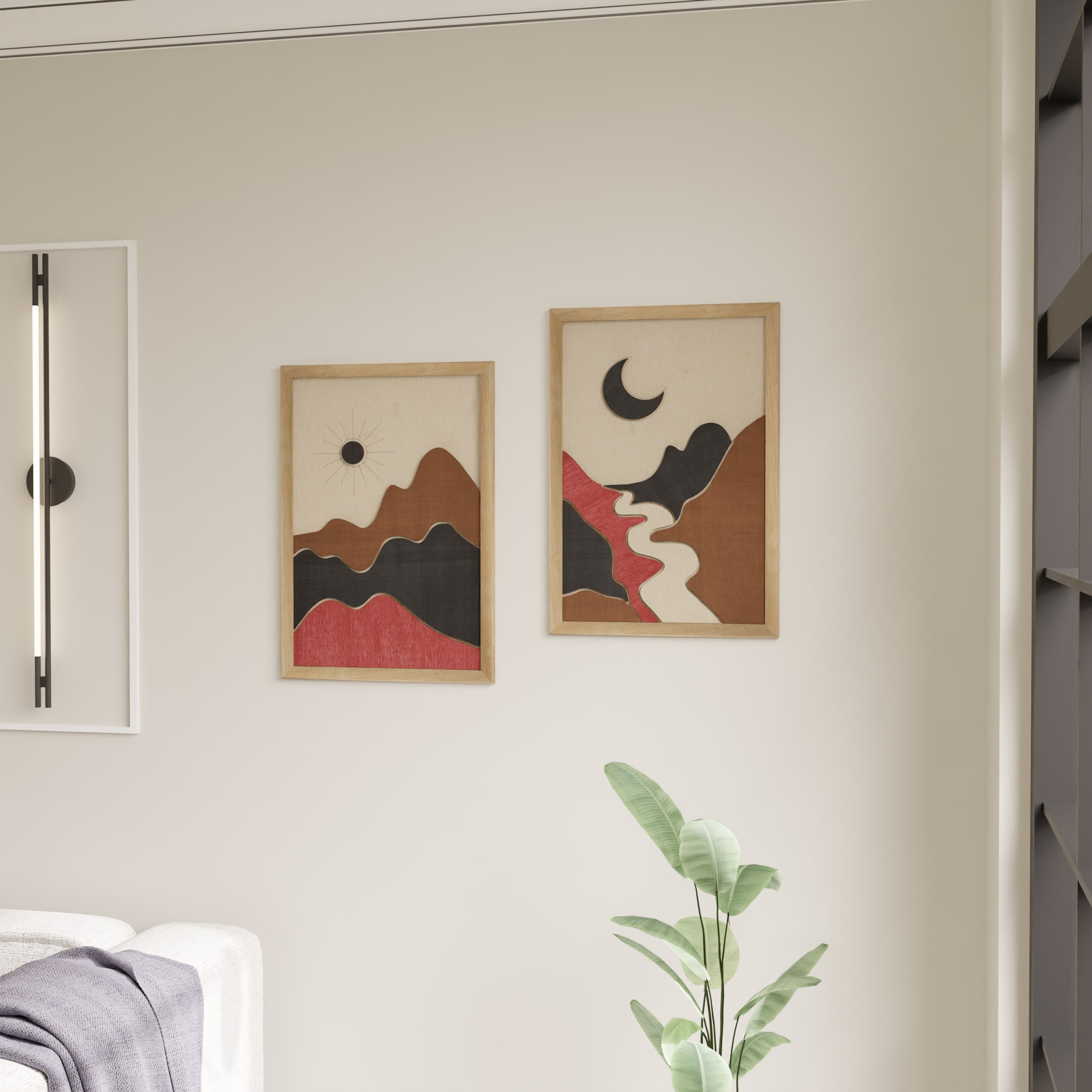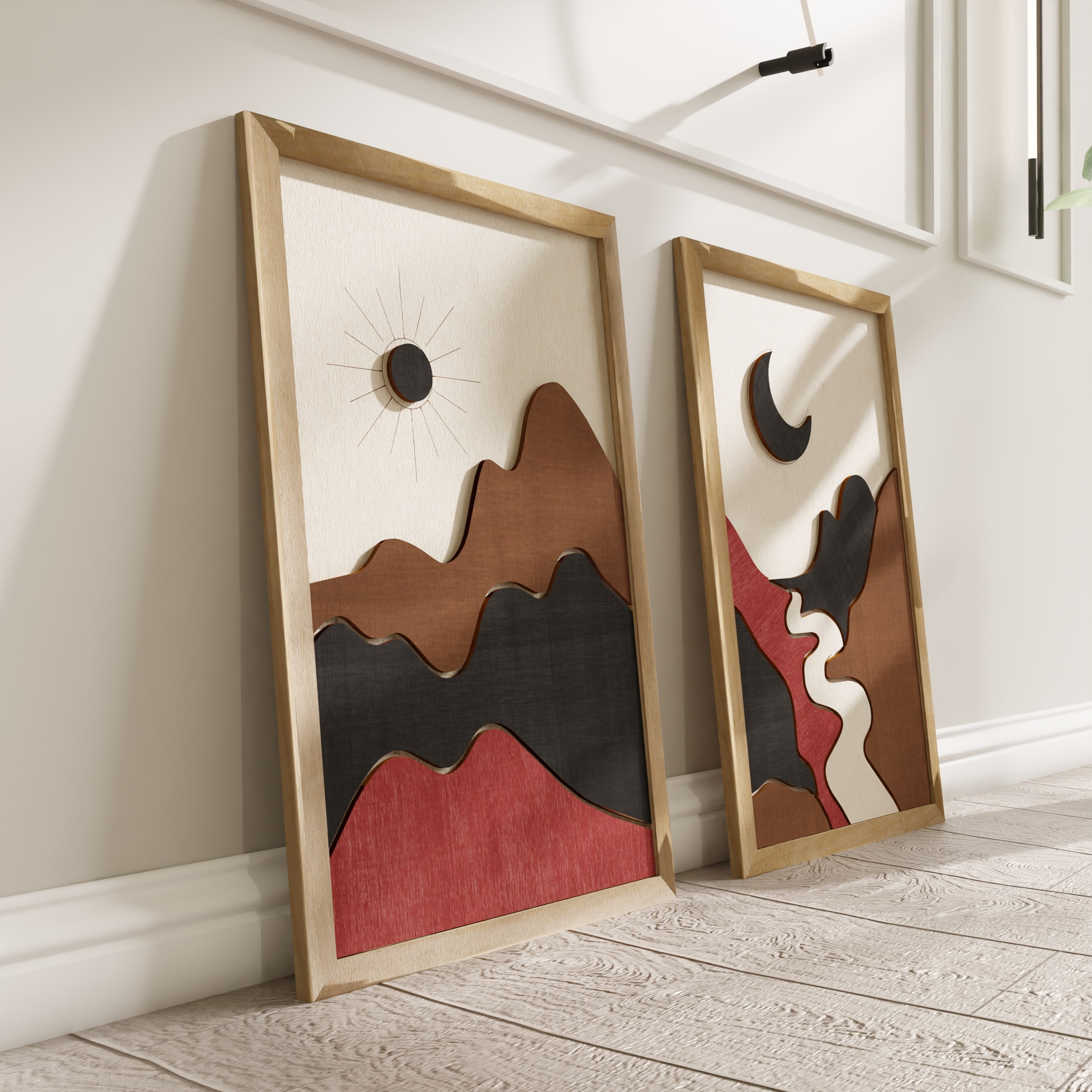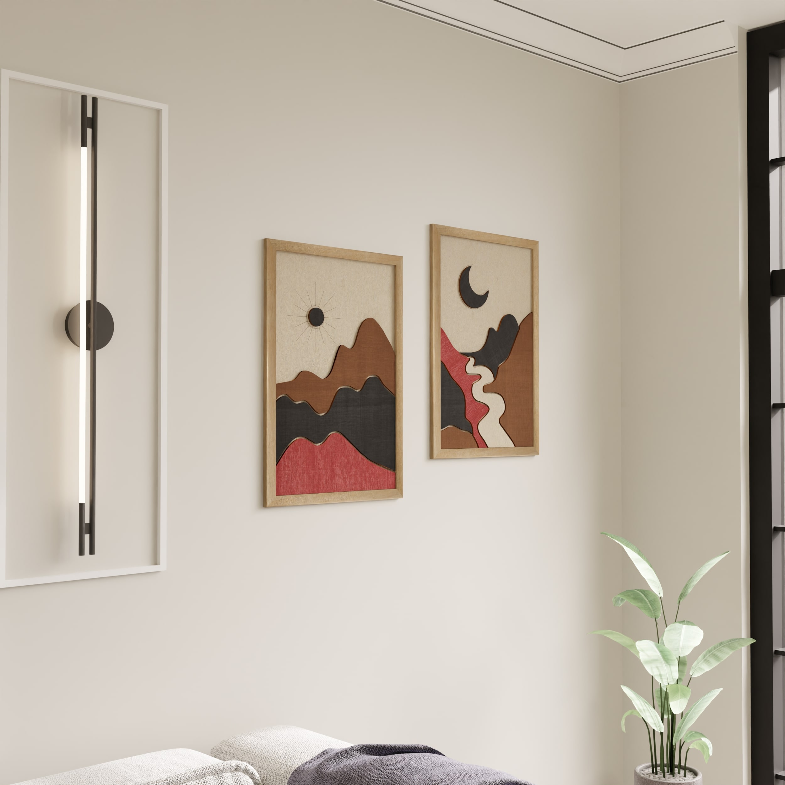 -Bu zarif iki ahşap çerçeveli manzara tablosundan oluşan setle ev dekorunuzu yükseltin. Doğal ahşap çerçevelerde güzel sanat eserleri içeren bu set, her odaya sofistikelik ve çekicilik katar.